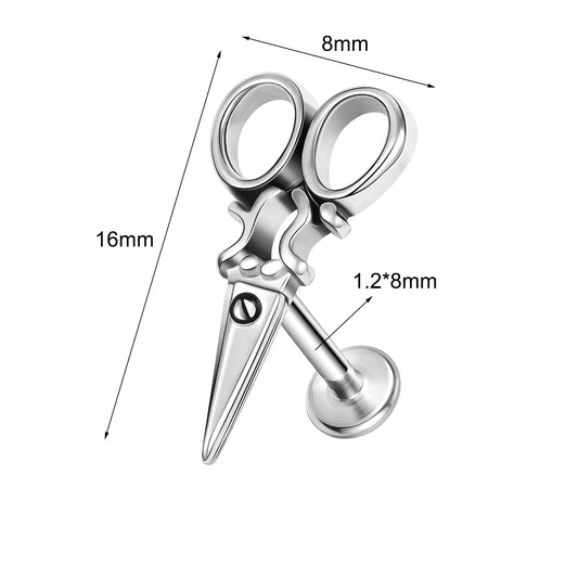 16g Scissors Labret Ring Flat Back Stud Earring Conch Helix Lip Piercing