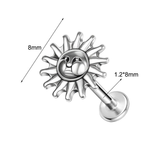 16g Sun Labret Ring Flat Back Stud Earring Conch Helix Lip Piercing