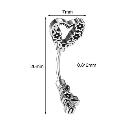 14G Heart Dangle Belly Navel Rings Bling Zircon Belly Button Rings