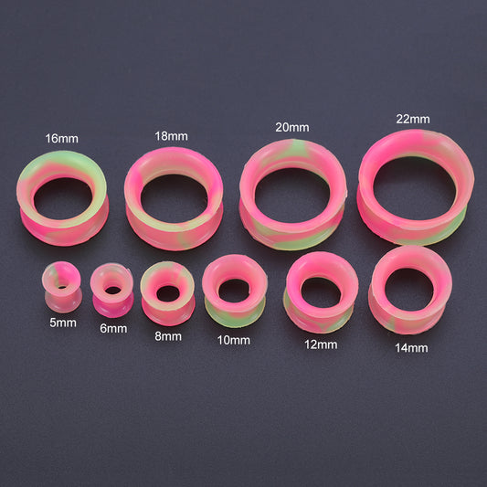 5-22mm Thin Silicone Flexible Pink Yellow Ear Tunnels Double Flared Expander Ear Gauges