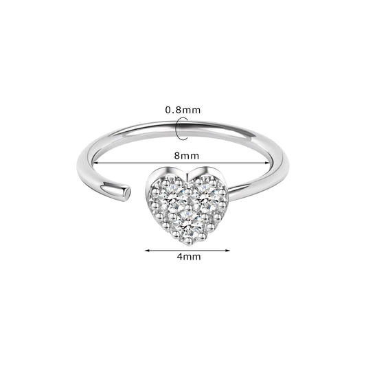 20G Heart Crystal Nose Ring Soft Wire Helix Cartilage Piercing