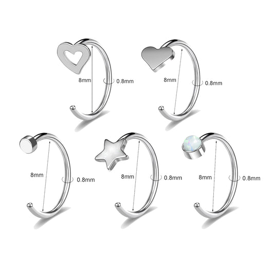 20G C Shape Heart Nostril Piercing Star Opal Cartilage Helix Piercing-Economic Set