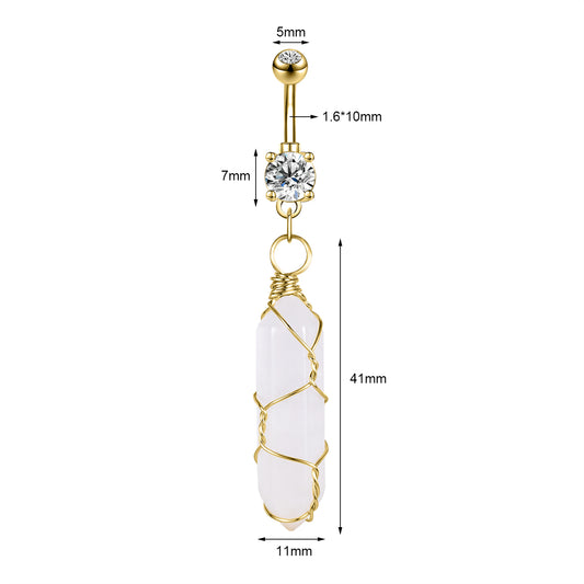 14g Stone Dangle Belly Button Rings White Crystal Belly Navel Piercing Jewelry