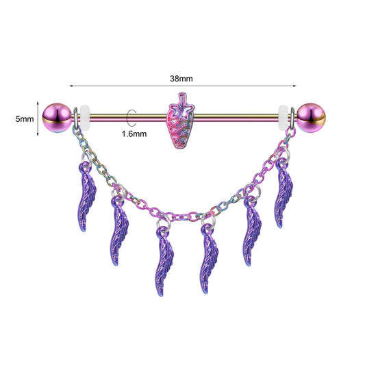 14G Chili Rainbow Industrial Barbell Dangle Chain Helix Ear Piercing