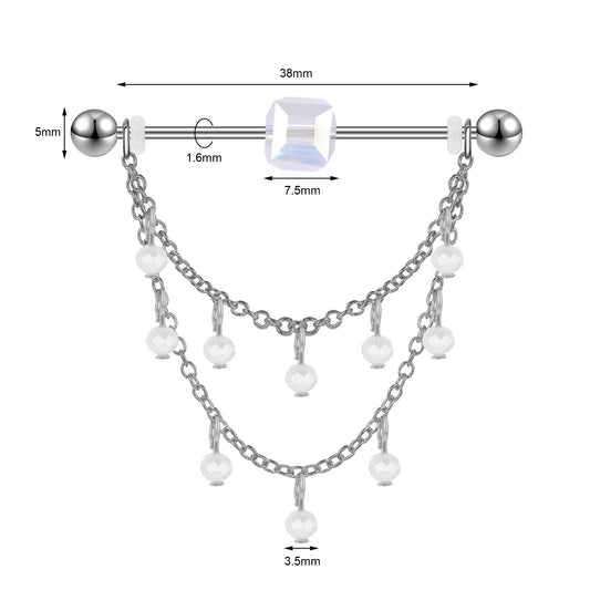14G Tassel Industrial Barbell Earring Dangle Chain Stud Earring Piercing