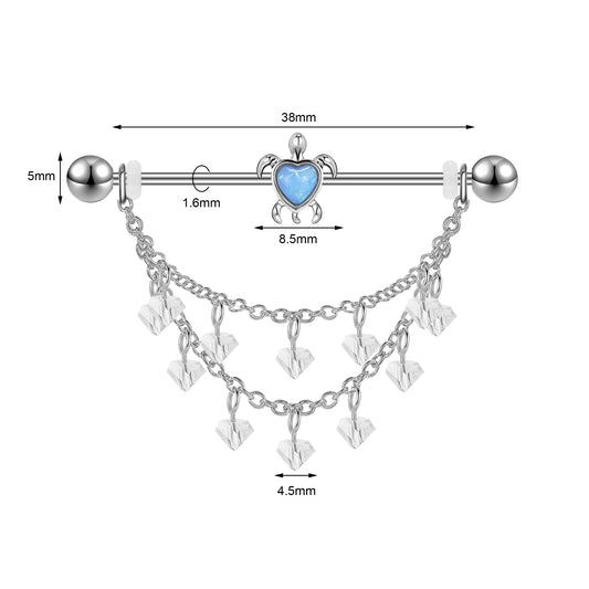 14G Tortoise Opal Industrial Barbell Earring Dangle Chain Helix Ear Piercing