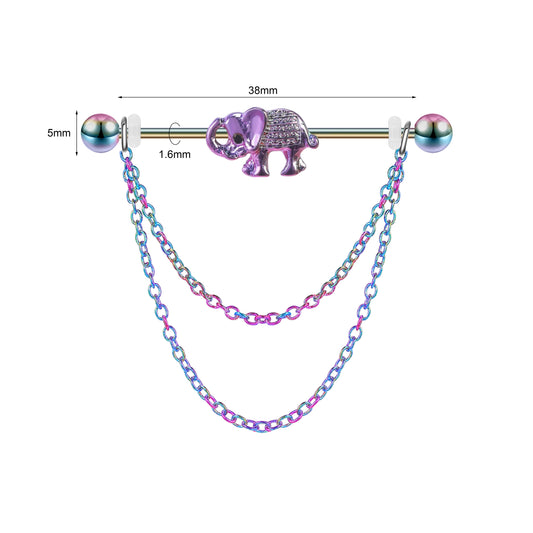 14G Elephant Rainbow Industrial Barbell Dangle Chain Helix Ear Piercing
