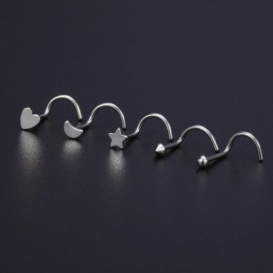 5 pcs/set Heart Moon Star 20g Nose Rings Piercing Curve Nose Studs-Economic Set