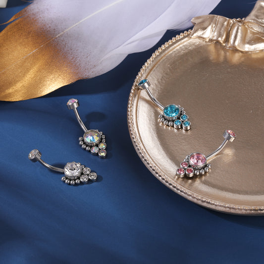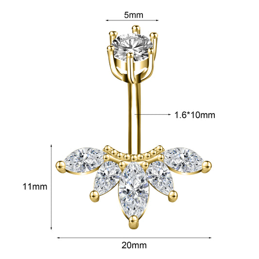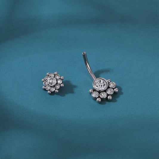 Regular price $9.99Regular priceUnit price / per$14.29Sale price $9.99Oval Zircon Inlay Flower Belly Button Rings AB White Crystal Belly Navel Piercing