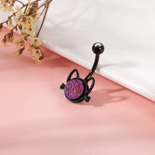 Cute Cat Belly Button Rings/ Black Stainless Steel