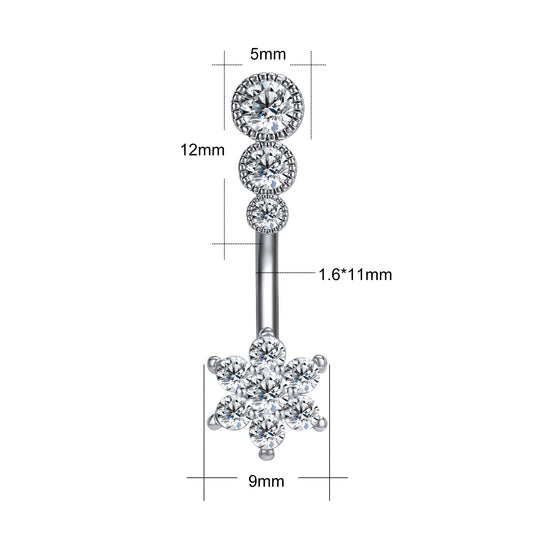 Oval Zircon Inlay Flower Belly Button Rings AB White Crystal Belly Navel Piercing