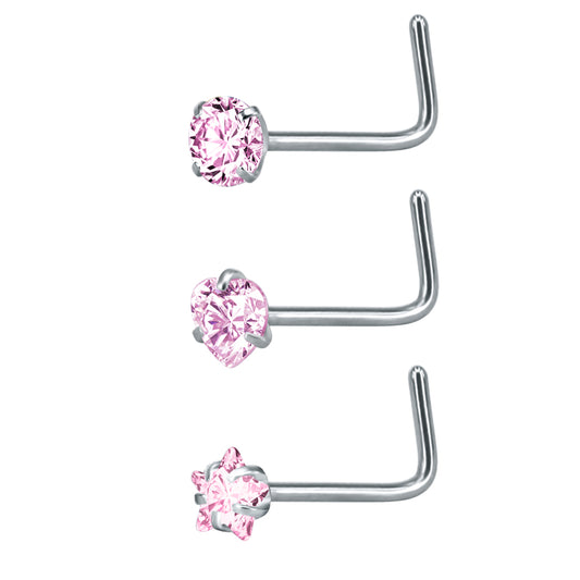 3pcs/Set 20g Nose Stud Piercing Round/Heart/Star L Shaped-Economic Set