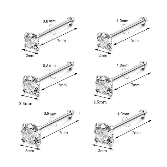 6Pcs/Set Silver Nose Stud Rings Crystal Nose Bone Piercing-Economic Set