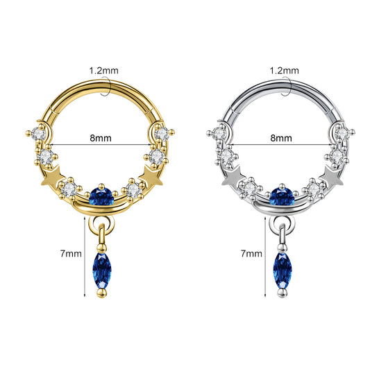 16G Blue Crystal Dangle Nose Ring Star Moon Helix Cartilage Piercing