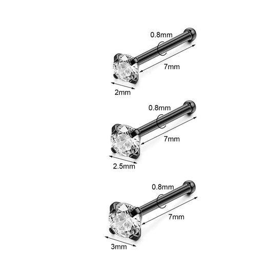 6Pcs/Set 20g Black Nose Stud Rings Crystal Nose Bone Piercing-Economic Set