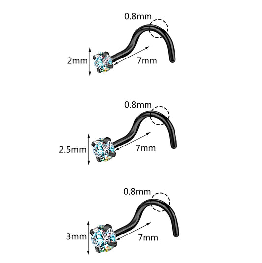 3Pcs/Set 20g Round Crystal Nose Ring Piercing Nose Corkscrew Stud