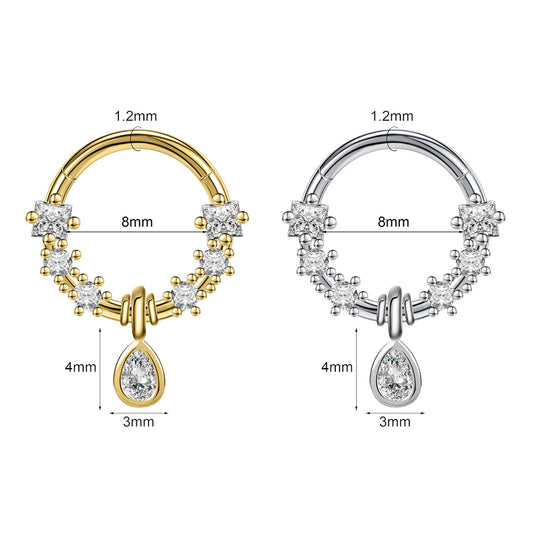 16G Water Drop Dangle Nose Ring Crystal Helix Cartilage Piercing