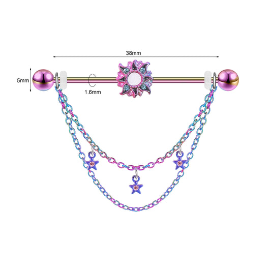 14G Flower Rainbow Industrial Barbell Star Dangle Chain Helix Ear Piercing