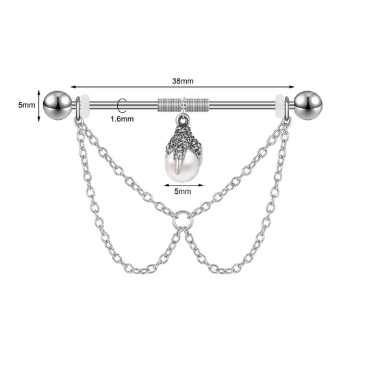 14G Dragon Claw Pearl Industrial Barbell Earring Dangle Chain Helix Ear Piercing