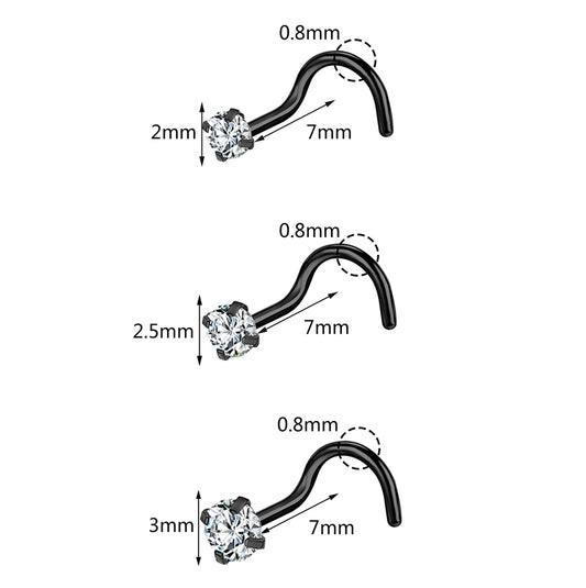 6 Pcs/Set 20G White Crystal Nose Rings Black Nose Stud Nose Corkscrew Piercing