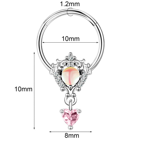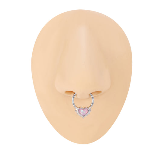 16g Heart Nose Ring Opal Septum Ring Nose Piercing Jewelry