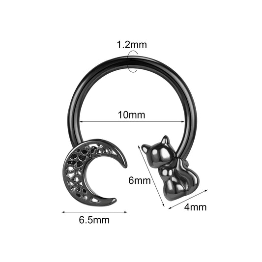 16G Black Moon Cat BCR Nose Rings Horseshoe Shape Nose Septum Rings Stainless Steel Septum Clicker Piercing