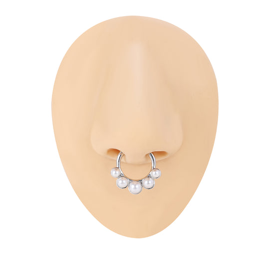 16g White Pearl Nose Ring Hinged Septum Ring Piercing Jewelry