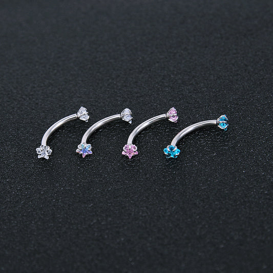 2 Pcs 16g Eyebrow Ring Piercing Barbell Star Crystal Zirconia Curve Helix Daith Piercing
