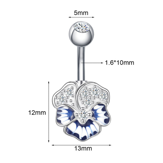 14G Flower Belly Rings Inlay Crystal and Enamel Belly Navel Button Rings