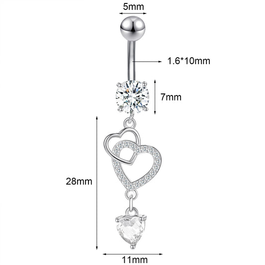 14G Double Heart Belly Navel Rings Dangle Belly Button Rings