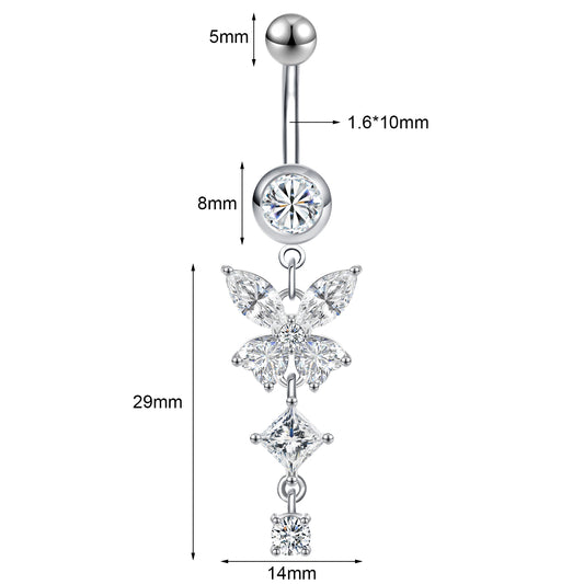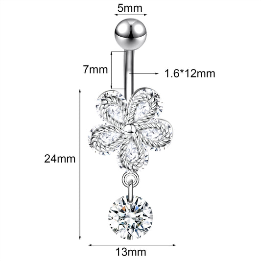 14G Flower Belly Navel Rings Zirconia Dangle Belly Button Rings
