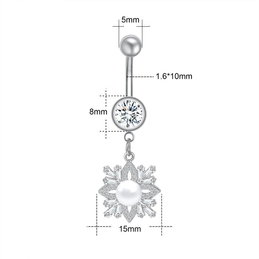 14g Drop Dangle Snow Flower Belly Navel Rings Rose Gold Crystal Pearl Navel Piercing Jewelry