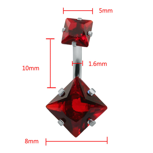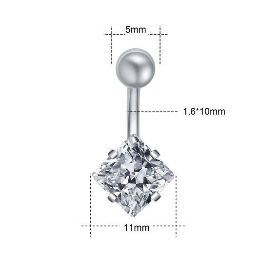 14g Square Zirconia Belly Button Rings Stainless Steel Belly Navel Piercing Jewelry