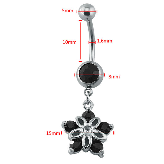 14g Stars Stainless Steel Belly Button Rings Black Crystal Dangle Navel Piercing Jewelry