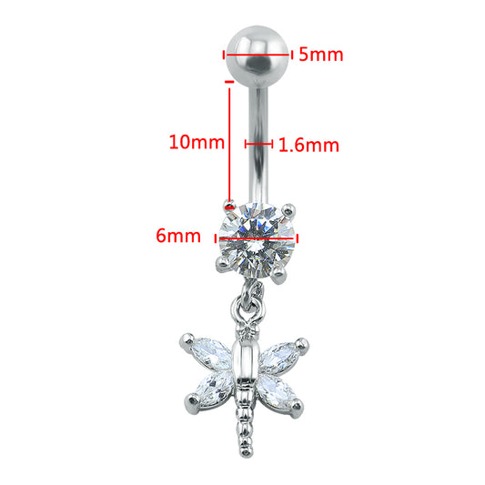14g Dragonfly Stainless Steel Belly Button Rings Cubic Zirconia Navel Piercing Jewelry