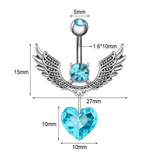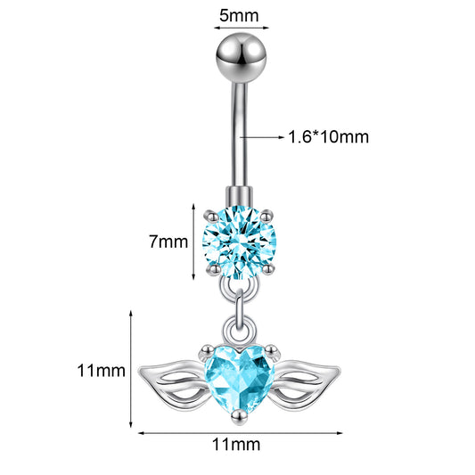 14G Double Wing Dangle Belly Navel Rings Blue Zirconia Belly Button Rings
