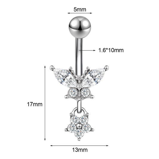 14G Butterfly Belly Navel Rings Flower Zirconia Belly Button Rings