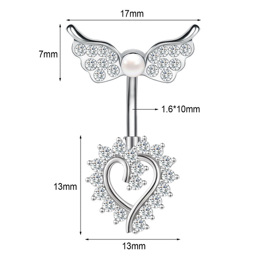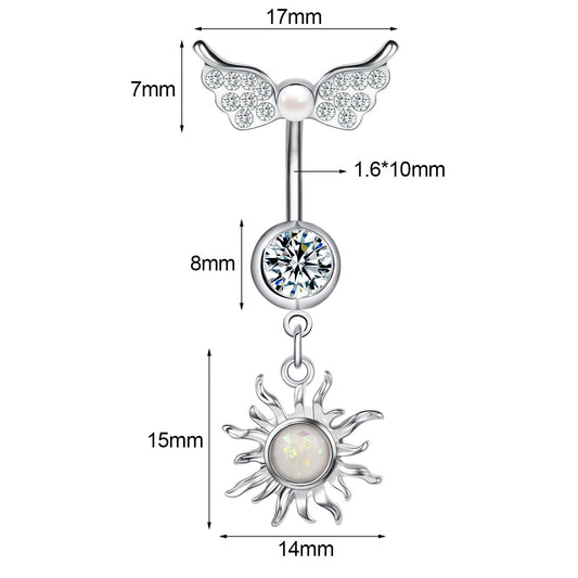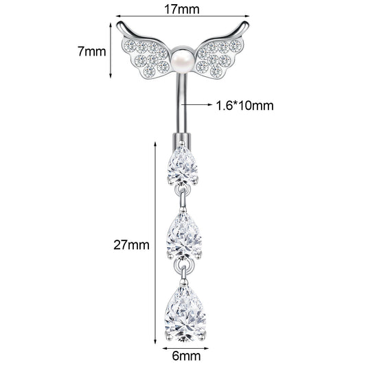 14G Double Wing Dangle Belly Navel Rings Bling Zirconia Belly Button Rings