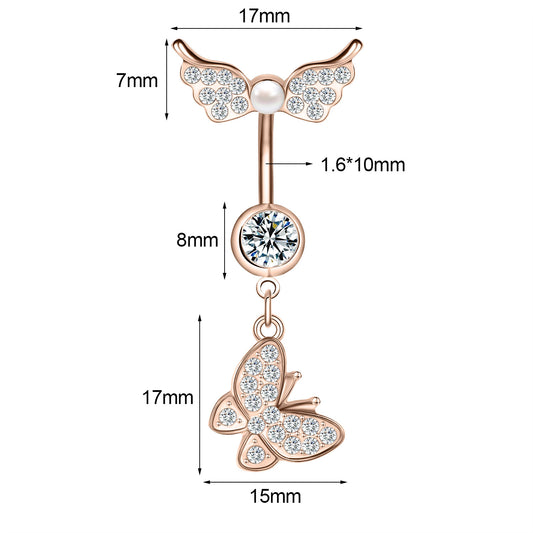14G Butterfly Dangle Belly Navel Rings Bling Zircon Belly Button Rings