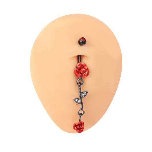 14G Rose Flower Belly Navel Rings Cubic Zirconia Belly Button Rings