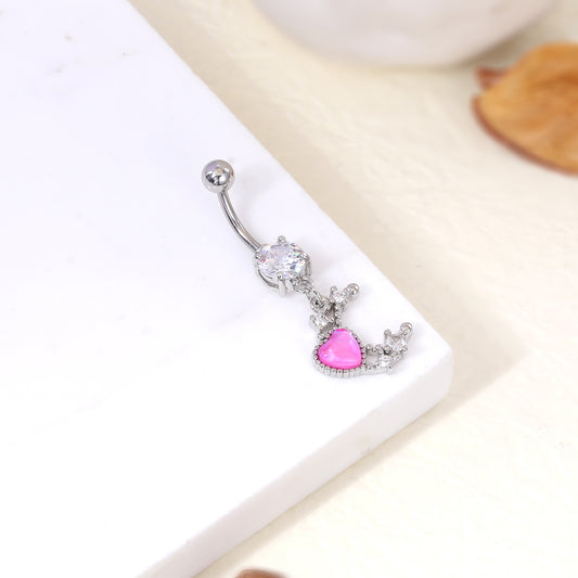 14G Moon Dangle Belly Navel Rings Red Heart Zirconia Belly Button Rings