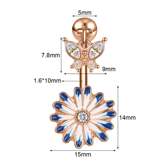 14G Butterfly Belly Navel Rings Flower Belly Button Rings