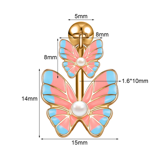14G Double Butterfly Belly Navel Rings White Pearl Belly Button Rings