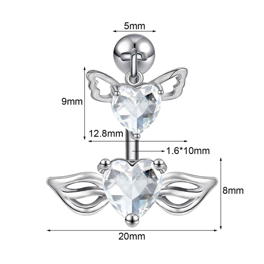 14G Double Wing Belly Navel Rings Heart Zirconia Belly Button Rings