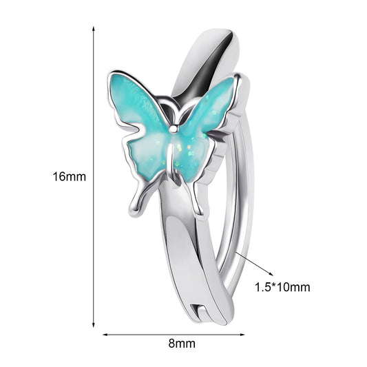 Blue Butterfly Belly Navel Rings Reverse Curved Belly Button Rings