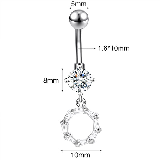 14G Round Crystal Ring Belly Navel Rings Dangle Zirconia Belly Button Rings