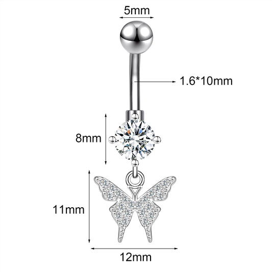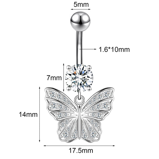 14G Butterfly Dangle Belly Navel Rings Zirconia Belly Button Rings