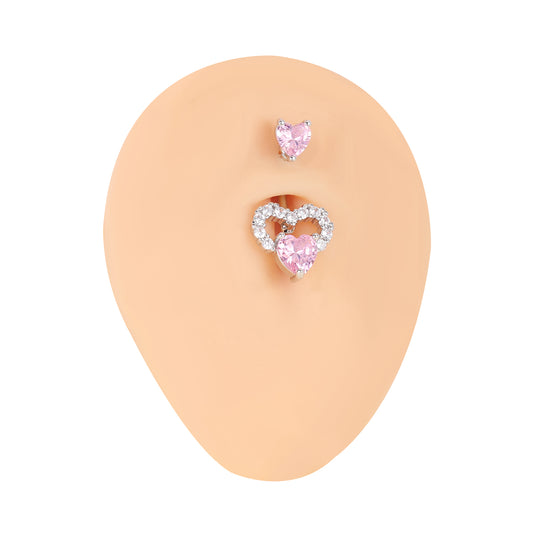14G Double Heart Belly Navel Rings Pink Zirconia Belly Button Rings