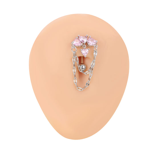 14G Chain Belly Navel Rings Pink Heart Zirconia Belly Button Rings