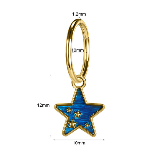 16G Blue Star Dangle Belly Button Rings Gold Hoop Belly Navel Piercing